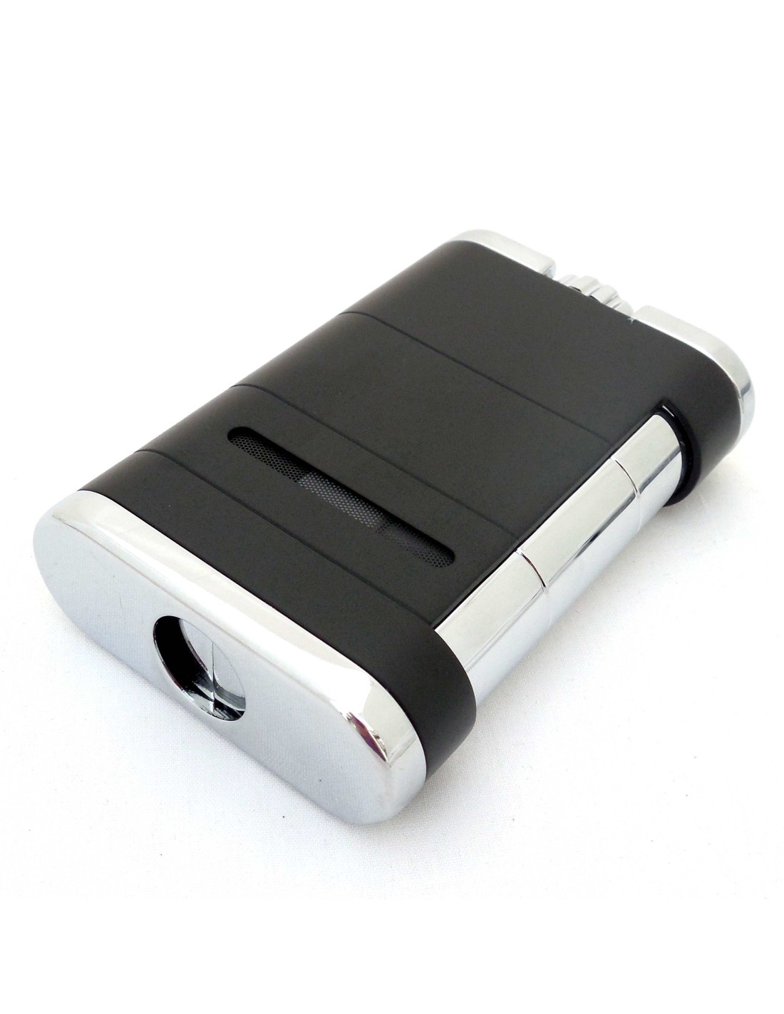 Elément important de votre fumoir: le briquet cigare 3 torches pour allumer rapidement tout le pied de votre puros sans le surchauffer. très bonne prise en main, réglage des flammes sans outil; Ce modèle est entièrement en métal: 2 tons chromé et titane pour le modèle "titane"  et 2 tons chromé et argent brossé pour le modèle "argent" deux finitions très bélégantes;