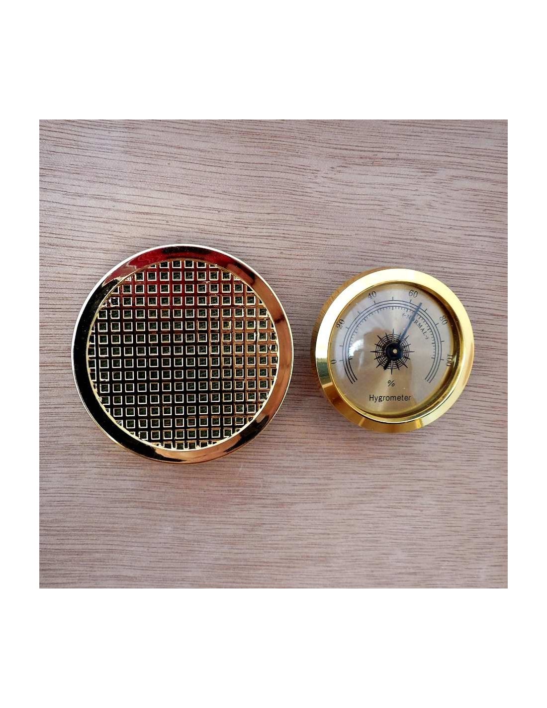 Elégante cave à cigares pour 25 à 30 cigares. Finition laquée brillante, plaquage extérieur épais ,décor carbone. Conception traditionnelle et robuste: MDF haute densité, plaquage intérieur cèdre d'Espagne, charnières dorées à limitation d'ouverture, séparateur réglable en cèdre.Livré avec un sachet Boveda 60g. 72% qui garantit une humidification...