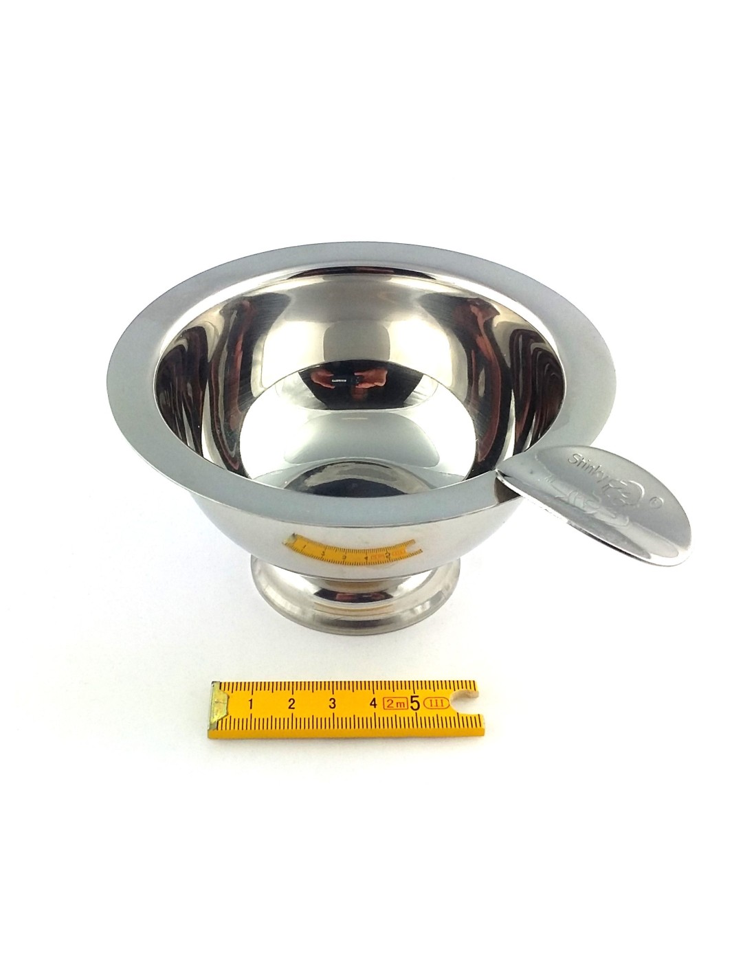 Cendrier cigare STINKY "égoïste" en métal chromé brillant suffisamment profond pour éviter les cendres de s'envoler au moindre coup de vent, un étrier porte cigare,