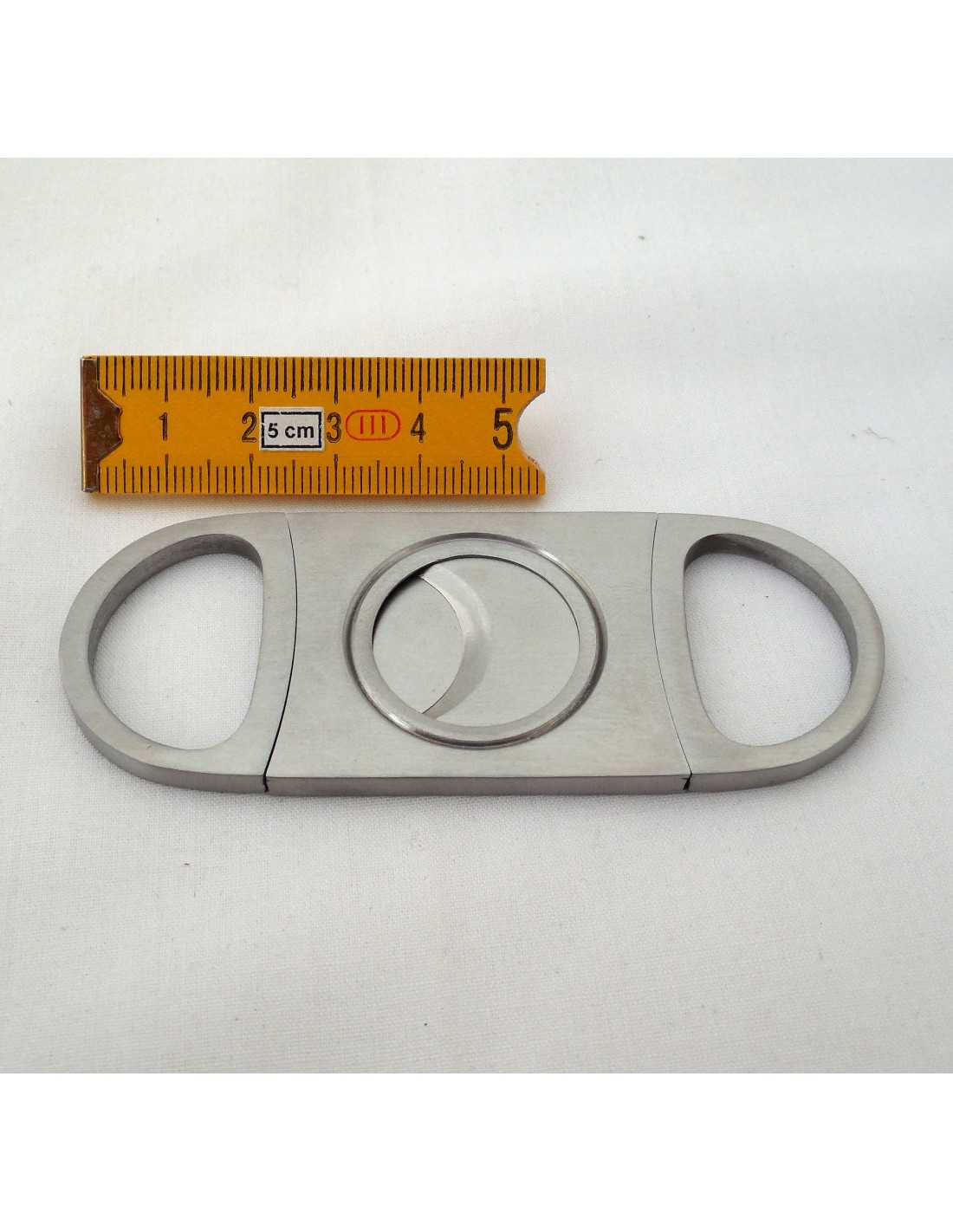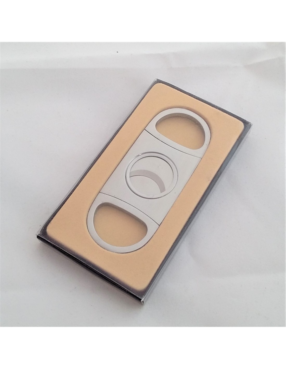 Coupe cigare double lames traditionnel,à bouts ronds et en acier inoxydable brossé. Un système plaque les lames l'une contre l'autre, pour assurer un tranchant net et éviter de déchiqueter votre puros. Tranche tous les modules jusqu'au dia. 22 mm. (ring 56). Un outil simple et efficace.