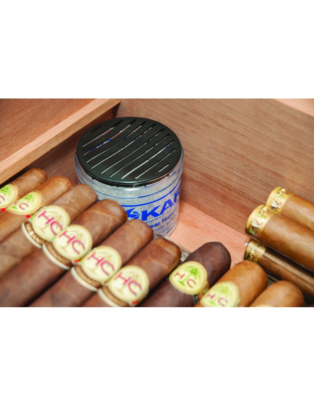 Maintient vos cigares à un taux de 70% d'humitité Permet de conserver le taux d'humidité de 25 à 50 cigares (en fonction de vos gouts et de la taille des cigares).