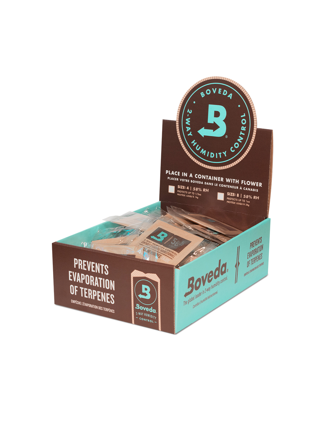 -Le sachet BOVEDA 4g. est équipé de la fameuse membrane à "osmose inverse" qui ajoute l'humidité lorsqu'elle manque ou l'élimine lorsqu'elle est trop importante.
