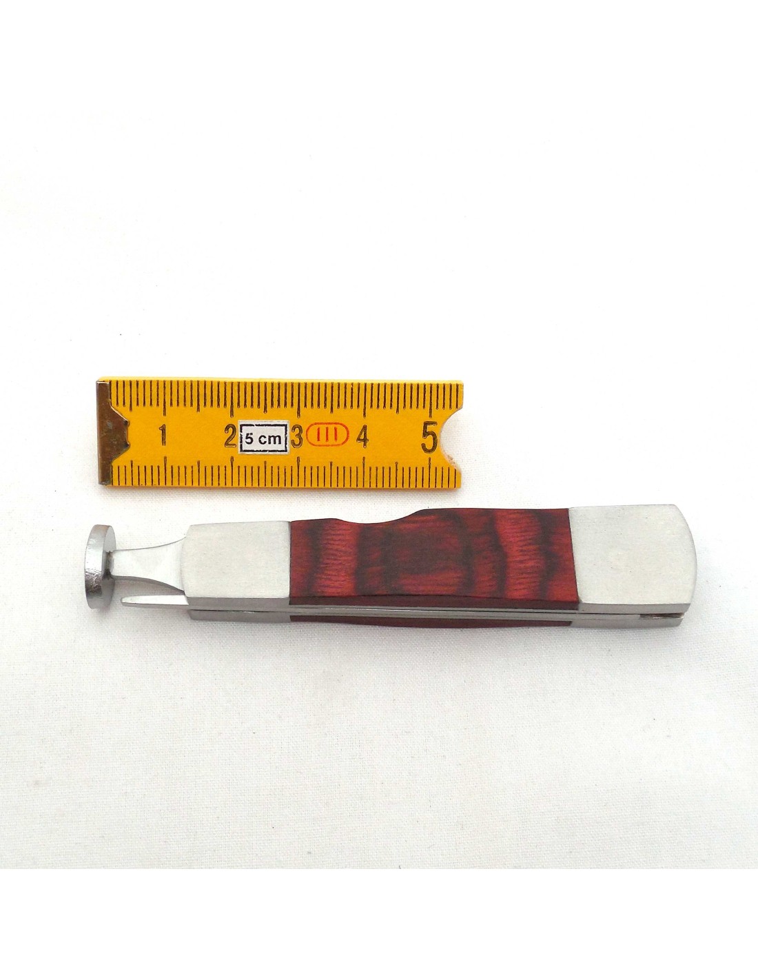Outil pipe métal et bois rouge forme couteau